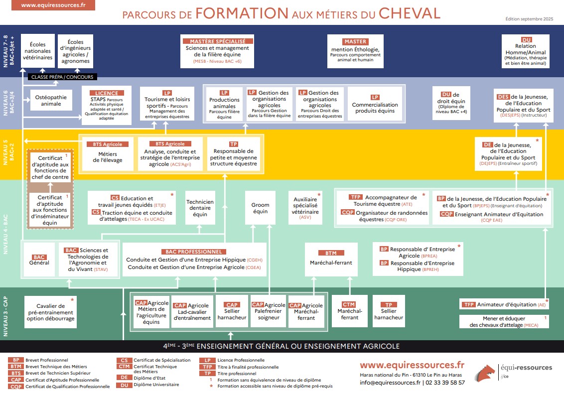 Recensement des établissements proposant des formations permettant d'intégrer la filière équine.