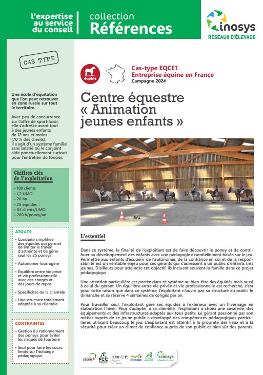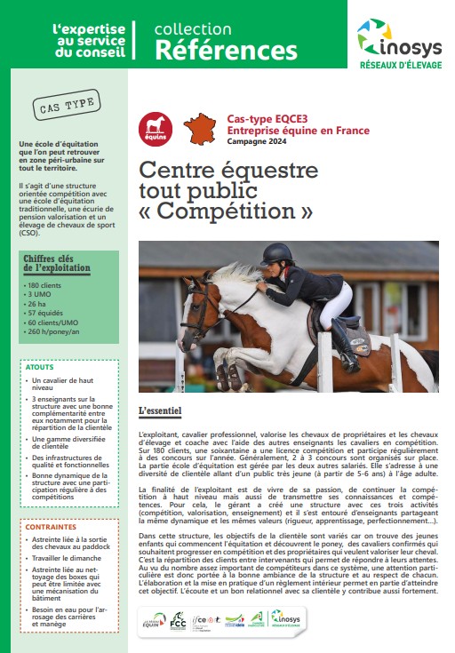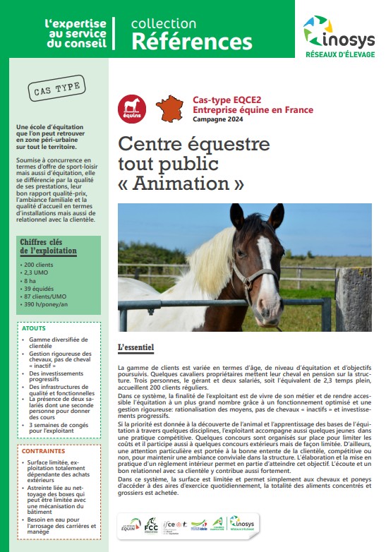 Une fois analysées et ventilées selon les systèmes d’exploitation (centres équestres, pensions, centres de tourisme équestre, entreprises de traction équine, entraîneurs de chevaux de courses, éleveurs de chevaux de trait,.....) toutes ces informations permettent d’établir des références chiffrées qui vous offrent la possibilité de comparer vos résultats, de vous poser des questions sur la rentabilité des différents ateliers de votre exploitation, de mettre en place et suivre des indicateurs utiles dans la gestion de vos activités.