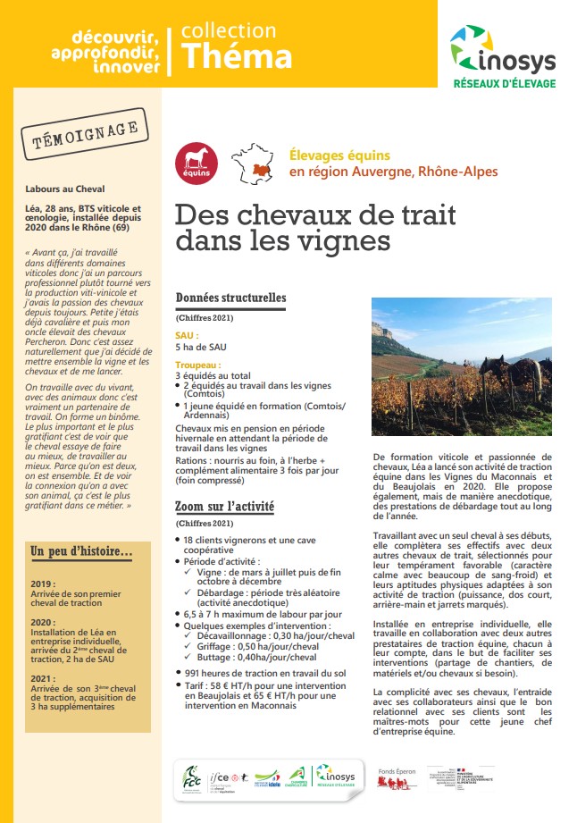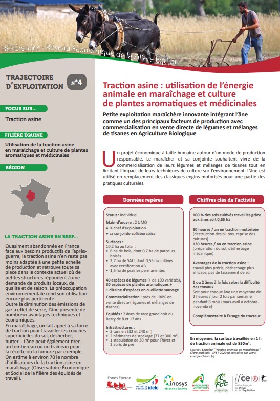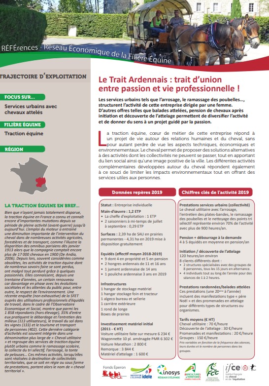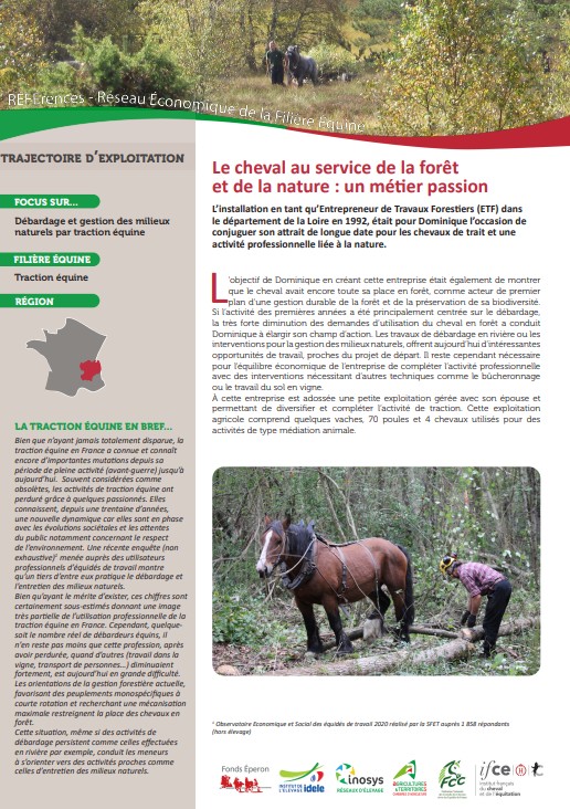 Le Réseau Equin s'est penché sur le fonctionnement des exploitations ayant développé un atelier permettant la valorisation de races de trait et de territoire : traction agricole, débardage, transport de personnes ou encore éco-pâturage ... Vous retrouverez l'ensemble des documents sur ce thème en téléchargement en cliquant sur les images concernées ci-dessous :