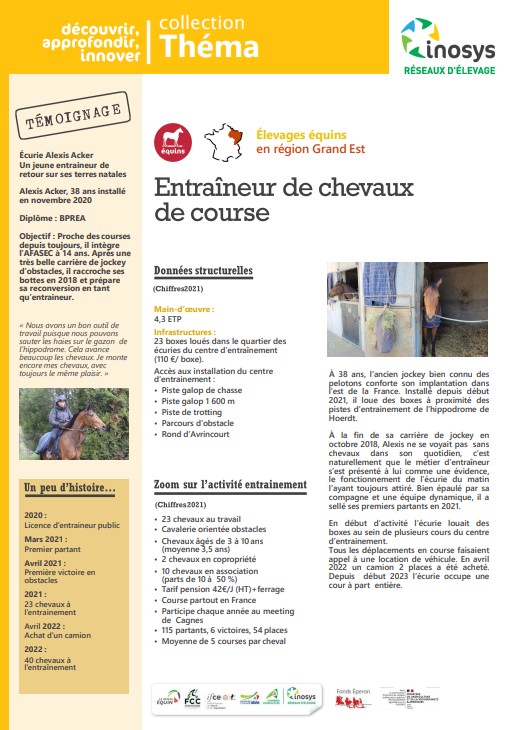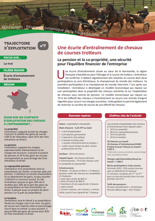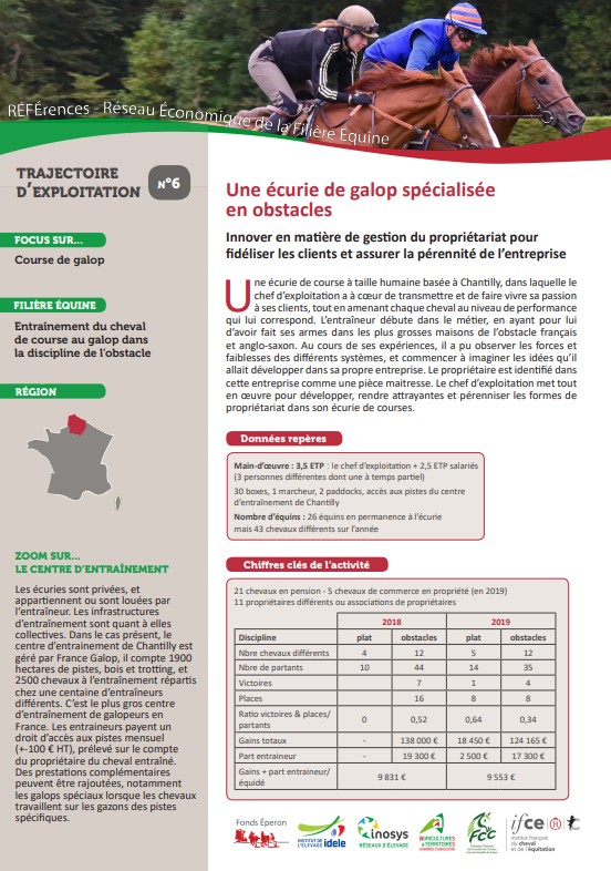 Le Réseau Equin s'est penché sur le fonctionnement des structures d'entrainement de chevaux de courses : entrainement, valorisation et commerce en trot et galop ... Vous retrouverez l'ensemble des documents sur ce thème en téléchargement en cliquant sur les images concernées ci-dessous :