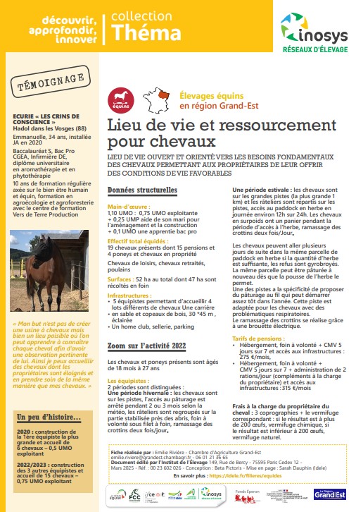 En région Bourgogne Franche-Comté le réseau Equin est animé par une conseillère spécialisée qui diffuse et partage les données technico-économiques collectées sur plus de 100 exploitations équines réparties à travers l’hexagone. Depuis plusieurs années les exploitations de Bourgogne Franche-Comté contribuent largement à la qualité des informations collectées grâce à plusieurs responsables de structures locales volontaires pour mettre à disposition toutes les données relatives au fonctionnement de leur entreprise.